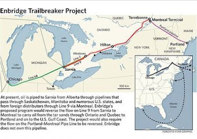 Opposition is mounting to a planned pipeline reversal that would bring 200,000 barrels per day of tar sands bitumen through the island of Montreal and Quebec’s Eastern Townships. Environmental groups, Quebec sovereigntists and small-town mayors have been mobilizing opposition to the proposal known as the Enbridge Trailbreaker project.