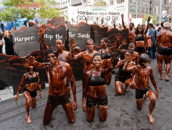 MONTREAL — Activists covered themselves in oil and rallied outside the Montreal Convention Centre as government officials met at the World Energy Congress Sunday.About 60 Greenpeace activists staged a Black Tide Beach Party, and 12 people donned oil-covered bathing suits, to protest the use of oil and to advocate for renewable energy options.